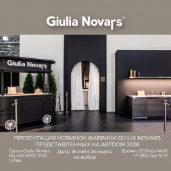 Команда салона Giulia Novars приглашает вас принять участие в Семинаре, посвященном новинкам фабрики Giulia Novars, представленным на международной выставке ARTDOM 2026.